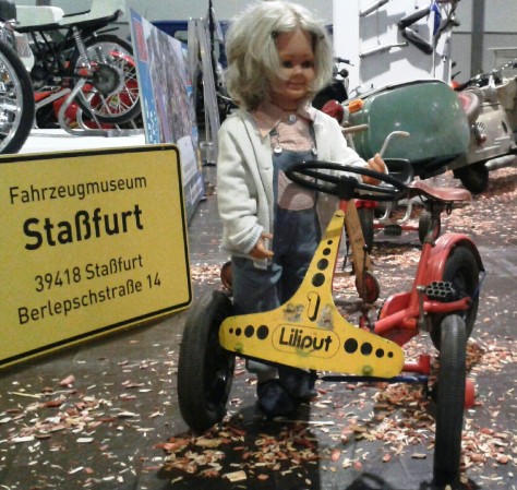 Manchmal im Fahrzeugmuseum zu sehen: Der WARTBANT (eine Trabantkarosse ist aufgesetzt auf einem Fahrgestell vom Wartburg ) und auch der originale Liliput aus den 80-er Jahren ... Ebenfalls im Bild zu sehen die Chefin vom Fahrzeugmuseum, die nette Geschichten zu den Ausstellungsstücken erzählen kann ...